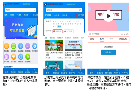 信息时代,需要信息素养。具有良好的信息素养,可以把事情做得更快、更好、更有效率,可以为自主学习、终身学习打下良好基础。高校信息素养教育数据库,课程涵盖了概念理论篇、检索技术篇、信息资源篇、检索系统篇、知识管理篇、学术资源篇、学术写作篇、科研工具篇、应用场景篇九大模块的数百节培训课程,以微视频的方式,通过2-5分钟讲述一个知识点,视频简短,但是干货满满,便于利用碎片化时间进行学习,可以视为高校《文献检索》或《信息检索》课程的升级版,跳出传统文检课的框架,重新定义信息素养教育的核心和逻辑;本数据库采用全案例教学,注重探究,将知识点嵌入到具体的案例中,在案例设计的过程中强化探究性,同时每个课程后面有相关的课后练习题,从而实现边学边练习。